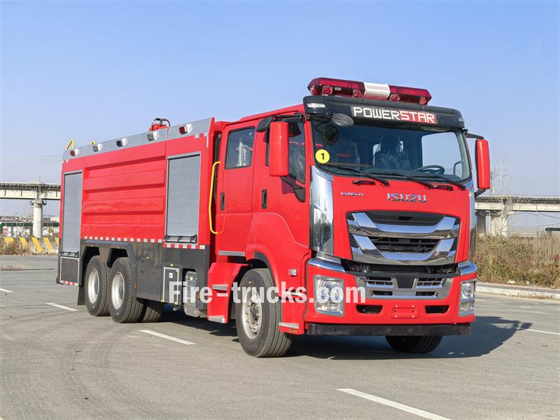 Water≥75 m,Foam≥70mสร้างขึ้นบนแชสซีสำหรับงานหนัก Isuzu GIGA 6X4 รถบรรทุกขนาด 35 ตันคันนี้ รถดับเพลิงอุตสาหกรรม Isuzu 10 CBM จากแอฟริกา เป็นรถดับเพลิงหลักที่ผสานสมรรถนะอันทรงพลัง การขนส่งของเหลวอย่างมีประสิทธิภาพ และการใช้งานอเนกประสงค์ ติดตั้งเครื่องยนต์อีซูซุ 520 แรงม้า และเกียร์ 12 สปีด ให้กำลังที่แข็งแกร่ง คุณสมบัติหลักประกอบด้วยถังน้ำ 8 ลูกบาศก์เมตร และถังโฟม 2 ลูกบาศก์เมตร ผสานรวมกับปั๊มดับเพลิงแรงดันสูง CB10/140 และหัวฉีดดับเพลิง PL8/64 เมื่อรวมกับอุปกรณ์ดับเพลิงครบครัน รถคันนี้จึงมีขีดความสามารถในการดับเพลิงที่แข็งแกร่งและประสิทธิภาพการดับเพลิงสูง ออกแบบมาโดยเฉพาะสำหรับการดับเพลิงในโรงงานปิโตรเคมีขนาดใหญ่และเพลิงไหม้พิเศษอื่นๆ จึงเป็นกำลังสำคัญของหน่วยดับเพลิงสมัยใหม่