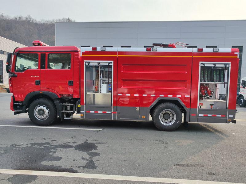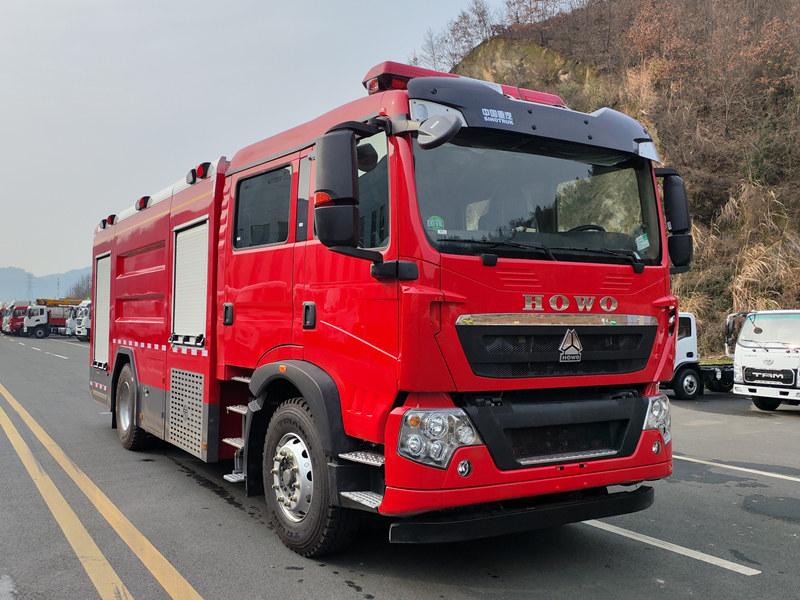 tanker material PP, 4X4, 6X6 drive, RHD driveรถดับเพลิงโฟม POWERSTAR 8000L HOWO เป็นรถดับเพลิงสมรรถนะสูง สร้างขึ้นบนแชสซี SINOTRUK HOWO รุ่น ZZ5207TXFV471GF5 ขับเคลื่อนด้วยเครื่องยนต์ดีเซล 350 แรงม้า จับคู่กับเกียร์ธรรมดา 8 สปีด ถังความจุขนาดใหญ่ 8,000 ลิตร ประกอบด้วยถังน้ำเหล็กกล้าคาร์บอนขนาด 6,000 ลิตร และถังโฟมสแตนเลสขนาด 2,000 ลิตร รถบรรทุกคันนี้ติดตั้งปั๊มดับเพลิง CB10/60 และปืนฉีดโฟม PL8/48 ซึ่งสามารถฉีดน้ำได้ไกลกว่า 70 เมตร และฉีดโฟมได้ไกลถึง 60 เมตร ด้วยประสิทธิภาพอันทรงพลัง ความจุของเหลวขนาดใหญ่ และการใช้งานที่ง่าย รถดับเพลิง HOWO มาพร้อมห้องโดยสารที่ยาวขึ้นเพื่อความสะดวกสบายยิ่งขึ้น เหมาะสำหรับโรงงานปิโตรเคมี พื้นที่อุตสาหกรรม ชุมชน และท่าเรือ สามารถดับไฟที่เกิดจากน้ำมันและเพลิงไหม้ทั่วไปได้อย่างมีประสิทธิภาพ จึงเป็นตัวเลือกที่เหมาะสมที่สุดสำหรับการดับเพลิงทั้งในเมืองและการใช้งานในภาคอุตสาหกรรม