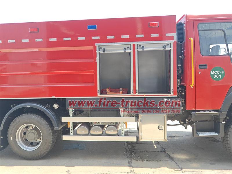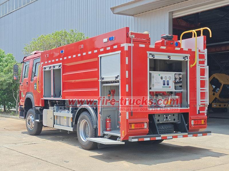 รถดับเพลิงโฟม HOWO 8000L เป็นรถดับเพลิงแบบสองฟังก์ชัน สร้างขึ้นบนแชสซี HOWO ติดตั้งเครื่องยนต์ 300 แรงม้า และปั๊มดับเพลิง CB10/60 ด้วยความจุถังรวม 8,000 ลิตร (ถังน้ำ 6,000 ลิตร + ถังโฟม 2,000 ลิตร) มาพร้อมระบบตรวจสอบเพลิงแบบน้ำ/โฟมสองวัตถุประสงค์ ระยะมากกว่า 60 เมตร จึงเหมาะสำหรับการดับเพลิงในโรงงานปิโตรเคมี เมือง และอุตสาหกรรม