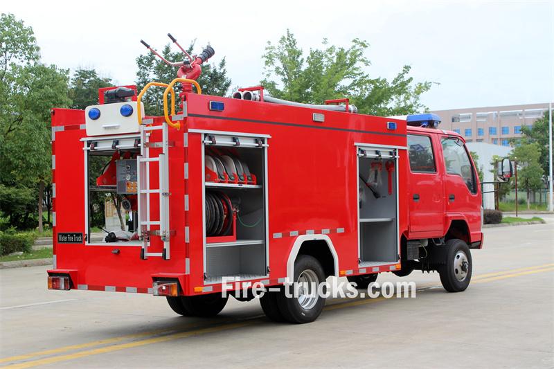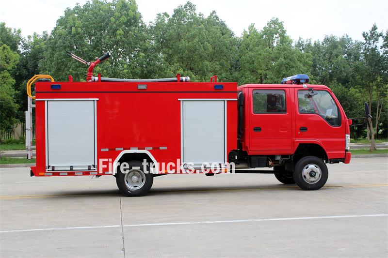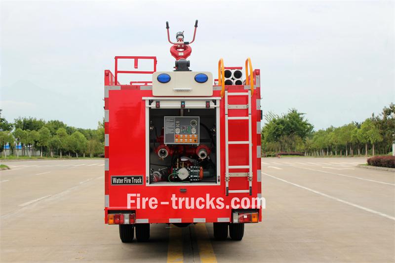 รถดับเพลิงบรรทุกน้ำ Isuzu ขนาด 3 ลูกบาศก์เมตรคันนี้ สร้างขึ้นบนแชสซีส์ Isuzu 100P 4x4 แบบแค็บคู่ ระยะฐานล้อ 3360 มม. ติดตั้งเครื่องยนต์ Isuzu 4KB1-TCG60 และเกียร์ธรรมดา 5 สปีด MSB ส่วนหน้าของตัวถังเป็นห้องเก็บอุปกรณ์ ส่วนกลางเป็นถังเก็บน้ำเหล็กกล้าคาร์บอนขนาด 300 ลิตร และส่วนท้ายเป็นห้องปั๊ม ซึ่งติดตั้งปั๊มดับเพลิง CB10/60-XZ แผงควบคุม สายดับเพลิง อุปกรณ์ดับเพลิง ฯลฯ ติดตั้งหัวฉีดน้ำดับเพลิง PS8/30W ไว้บนหลังคา