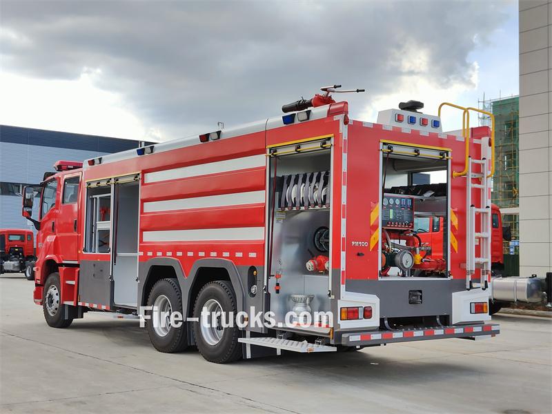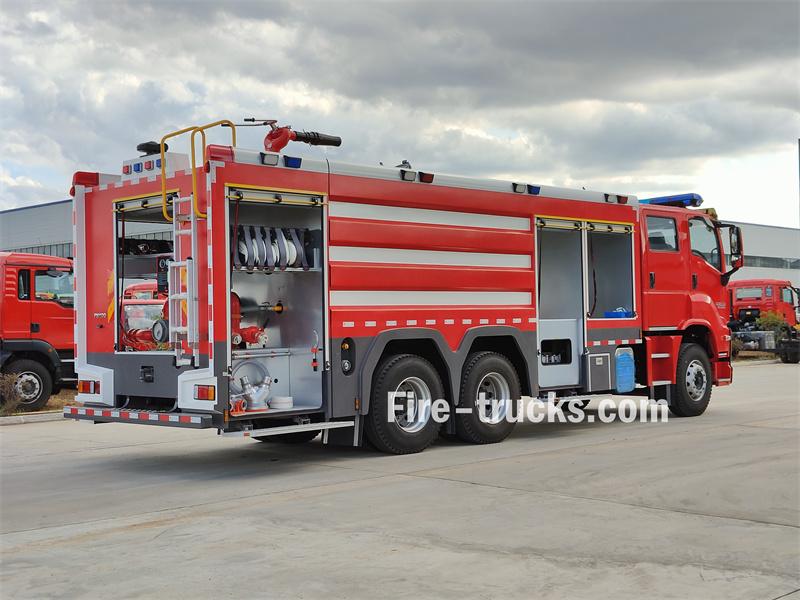 รถดับเพลิงโฟม Isuzu GIGA 6X4 ขนาด 10 ลูกบาศก์เมตร สร้างขึ้นบนแชสซี Isuzu GIGA 6X4 ที่มีระยะฐานล้อ 4600 มม. + 1370 มม. ติดตั้งเครื่องยนต์ Isuzu 6UZ1-TCG61 และเกียร์อัตโนมัติ 12 สปีด ส่วนหน้าของตัวถังเป็นห้องเก็บอุปกรณ์ ส่วนกลางประกอบด้วยถังเก็บน้ำเหล็กกล้าคาร์บอนขนาด 8500 ลิตร และถังเก็บโฟมสแตนเลสขนาด 1500 ลิตร ส่วนท้ายเป็นห้องปั๊ม ซึ่งติดตั้งปั๊มดับเพลิง CB10/60-XZ แผงควบคุม สายดับเพลิง อุปกรณ์ดับเพลิง ฯลฯ และมีหัวฉีดดับเพลิง PL8/48 ติดตั้งอยู่บนหลังคา