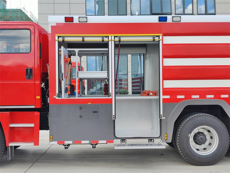 1. ห้องอุปกรณ์ด้านหน้า: ตั้งอยู่ด้านหลังห้องคนขับ มีประตูม้วนอลูมิเนียมอัลลอยด์ ใช้สำหรับเก็บอุปกรณ์ดับเพลิงทั่วไปและอุปกรณ์ป้องกันส่วนบุคคลต่างๆ (เช่น พลั่วดับเพลิง จอบ ขวาน ประแจ และเครื่องมือทำลายอื่นๆ ที่เก็บสายยาง ฯลฯ)