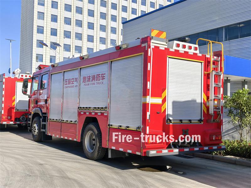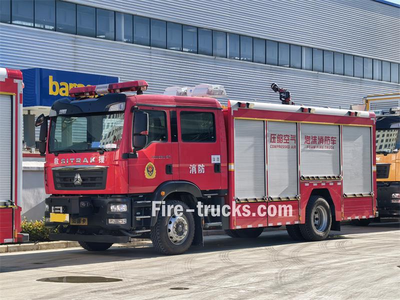 รถดับเพลิงกู้ภัย Sinotruk 6 CBM CAFS ดัดแปลงมาจากแชสซี Sinotruk C5H ที่มีระยะฐานล้อ 4700 มม. ติดตั้งเครื่องยนต์ Sinotruk MC07H.35-60 เกียร์ 8 สปีด และมีถังเก็บน้ำขนาด 5 ลูกบาศก์เมตร ถังโฟมชนิด A ขนาด 350 กก. และถังโฟมชนิด B ขนาด 550 กก. ตัวรถติดตั้งปั๊มดับเพลิงประสิทธิภาพสูง หัวฉีดน้ำดับเพลิง และระบบ CAFS ใช้งานง่าย สามารถใช้สำหรับงานกู้ภัยฉุกเฉินได้อย่างครบวงจร เช่น การดับเพลิง การลาดตระเวน การทำลาย การกู้ภัย การให้แสงสว่าง และการป้องกัน