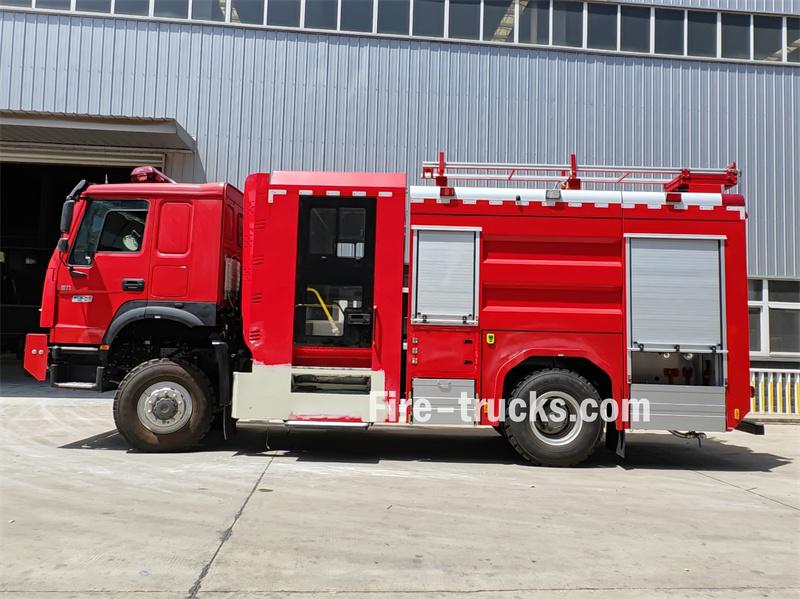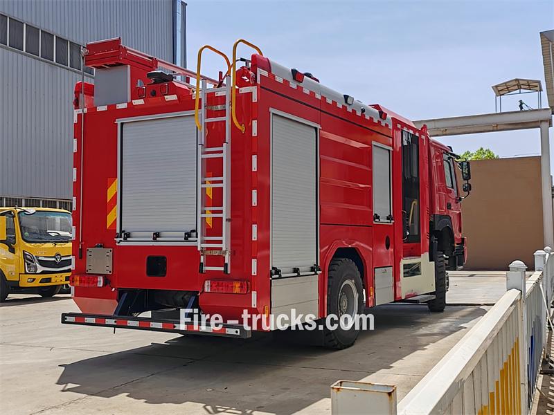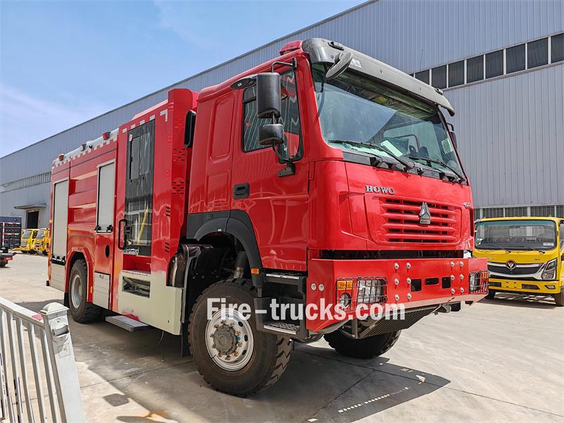 รถดับเพลิง HOWO 4×4 เป็นรถดับเพลิงระดับมืออาชีพที่สร้างขึ้นบนแชสซีออฟโรด SINOTRUK HOWO 4×4 มาพร้อมกับปั๊มดับเพลิงคุณภาพสูง ถังเก็บน้ำขนาด 6 ลูกบาศก์เมตร และถังโฟมขนาด 2 ลูกบาศก์เมตร พร้อมด้วยระบบตรวจสอบเพลิงที่สามารถฉีดน้ำได้ไกลถึง 70 เมตร และห้องเก็บอุปกรณ์แบบแยกส่วน ขับเคลื่อนด้วยเครื่องยนต์ 380 แรงม้า พร้อมระบบขับเคลื่อนสี่ล้อแบบพาร์ทไทม์และยางออฟโรด รถคันนี้แสดงให้เห็นถึงความคล่องตัวในทุกสภาพภูมิประเทศที่ยอดเยี่ยม ออกแบบมาโดยเฉพาะสำหรับสถานการณ์การดับเพลิงที่ท้าทาย เช่น ป่าไม้ ไฟไหม้จากปิโตรเลียม ภัยพิบัติทางธรณีวิทยา และพื้นที่เขตเมืองแคบๆ ทำหน้าที่เป็นอุปกรณ์ดับเพลิงเคลื่อนที่ที่ตอบสนองอย่างรวดเร็ว